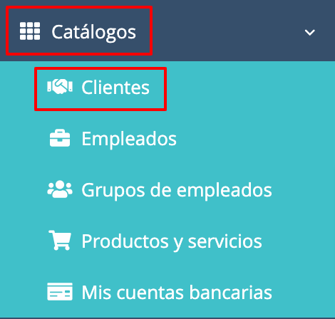 - Presiona sobre el menú Catálogos y selecciona la opción Clientes en el menú lateral izquierdo.
